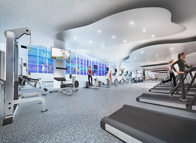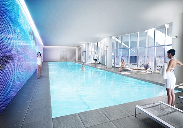 Notable amenities at the Infinity include a large fitness center with 75-foot indoor lap pool.